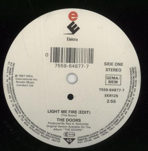 THE DOORS Light My Fire (1991 UK solid centre 7" vinyl single, also including People Are Strange. The picture sleeve & vinyl remain in Excellent condition with just a few light signs of wear & play EKR125)