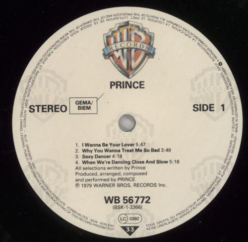 PRINCE Prince (Late 80s German issue of the 1979 9-track vinyl LP, including the singles I Wanna Be Your Lover and Sexy Dancer. The glossy barcoded picture sleeve displays some light general wear to the edges but comes with its polylined picture inner while the vinyl displays minimal signs of play WB56772)