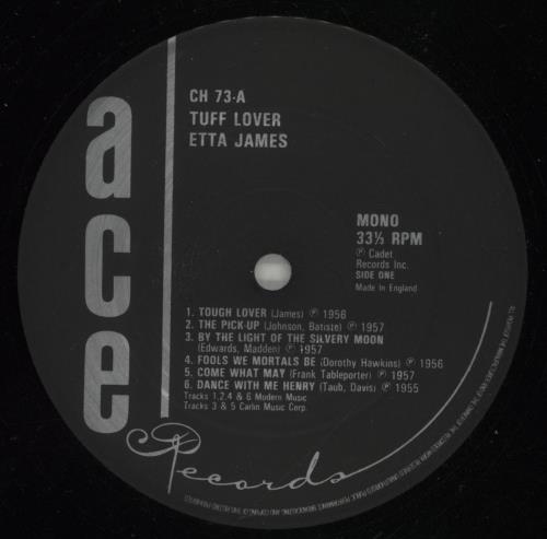 ETTA JAMES Tuff Lover (1983 UK 12-track vinyl compilation LP, the second collection of her recordings released on the Ace label, including some of her lesser known songs that span her rock 'n' roll recording period between 1956-57. The glossy picture sleeve shows some discolouration and some edge scuffing, whilst the vinyl shows few signs of play but remains in Excellent condition CH73)