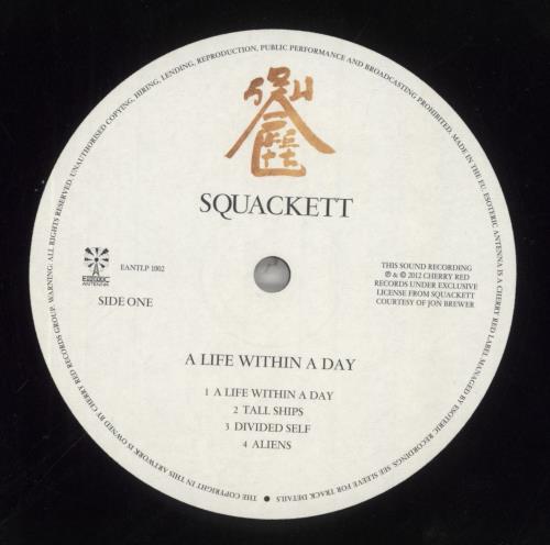 SQUACKETT A Life Within A Day (Scarce 2012 UK/EU limited edition vinyl LP, the one & only studio album by the musical project from Chris Squire of Yes and Steve Hackett ex-Genesis, housed in a gatefold picture sleeve. The sleevedisplays minimal wear, the vinyl has a few cosmetic surface marks and remains Excellent EANTLP1002)