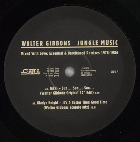 WALTER GIBBONS Jungle Music - Mixed With Love: Essential & Unreleased Remixes 1976-1986 (2010 UK/EU 9-track double LP compilation pressed on Heavyweight Vinyl, including a number of extended mixes no true Disco head can live without! Comes housed in a deluxe gatefold picture sleeve with extensive liner notes. The sleeve & vinyl are Near Mint STRUT066LP)