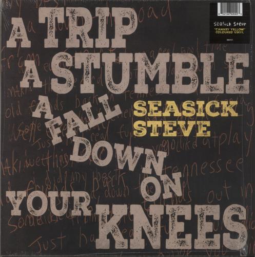 SEASICK STEVE A Trip A Stumble A Fall Down On Your Knees (2024 UK 10-track LP, pressed on Canary Yellow Vinyl. The thirteenth studio album by American blues musician. Picture sleeve with photo/credit inner. Includes an Autographed print of the cover artwork. The sleeve remains in the open shrink with hype-sticker. A Near Mint copy)