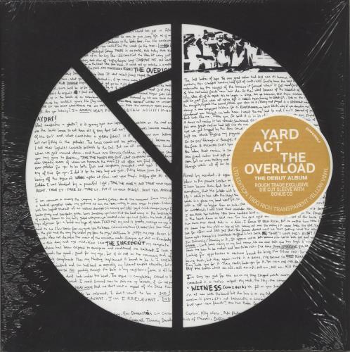 YARD ACT The Overload (2022 UK/EU Rough Trade exclusive limited edition 11-track LP pressed on 180gram Translucent Yellow Vinyl. The debut album from the Leeds rockers' including the singles Land Of The Blind, Payday, Rich, Pour Another and the title track. Housed in a die-cut sleeve with yellow & black picture inner and lyric printed insert. Includes a bonus live Compact Disc, recorded at Brudenell Social Club, in leeds on 5th June 2021, in a card wallet picture sleeve. This example remains in the open shrink with hype-sticker. A Near Mint copy. Limited to only 3000 copies)
