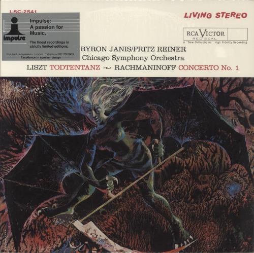 BYRON JANIS Todtentanz Concerto No. 1 In F-Sharp Minor, Op. 1 (1994 US Numbered Limited Edition pressed on audiophile quality 180gram Vinyl these two stunning pieces [Todtentanz by Liszt and Concerto No.1 by Rachmaninoff] were originally released in 1961 as part of the legendary Living Stereo series, a legendary reference recording expertly remastered byClassic Records from the original master tapes. Comes housed in a deluxe picture sleeve still in its resealable outer bag.The sleeve and vinyl are both inNear Mint condition LSC2541)