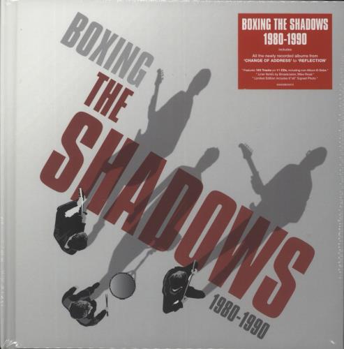 THE SHADOWS Boxing The Shadows 1980-1990 (2017 UK Amazon online exclusive limited edition 163-track Eleven CD box set. Featuring a collection of their musical output from 1980-90, including studio albums, several non-album B-sides, as well asa couple of single remixes. Packaged in a deluxe 7”x7” hardback casebound book, with each CD slotting into its own reproduced mini album ‘sleeve’, with a 7,000 plus word liner notes written by Broadcaster, Author and Songwriter Mike Read, includes elements from recently conducted interviews with members of the group. This sumptuous unique collection highlights how The Shadows worked with new studio technology to enhance their sound and create innovative interpretations of many current hits of the time, resulting in a whole new generation of fans. The discs are in BRAND NEW condition housed in the book-style sleeve which remains sealed within its original shrinkwrap SHADSBOX01X)