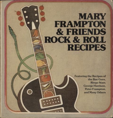 PETER FRAMPTON Mary Frampton and Friends: Rock and Roll Recipes (1980 UK 259-page softback book, compiled by Mary Frampton — wife of rock guitarist Peter Frampton — featuring a fascinating collection of favourite recipes contributed by an all-star cast of musicians, producers and friends from across the rock world. Includes culinary delights and personal dishes from the likes of The Bee Gees, Fleetwood Mac, The Who, The Rolling Stones, Led Zeppelin, Linda Ronstadt, and many more, offering a charming behind-the-scenes glimpse into the kitchens of rock’s elite. The cover displays minor shelfwear and light discolouration consistent with age, while the inner pages remain clean with only mild toning to the edges. A wonderful and unusual piece of rock memorabilia – equal parts cookbook and collector’s curiosity)