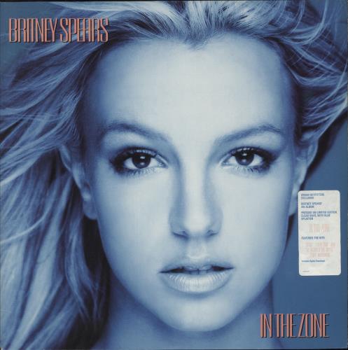 BRITNEY SPEARS In The Zone (Urban Outfitters Exclusive 2020 US limited edition 13-track LP pressed on Clear With Blue Splatter Vinyl, Britney's 4th album originally released in 2003 includes the hits Toxic,Everytime and Me Against The Music featuring Madonna. With bonus Rishi Rich's Desi Kulcha Remix. Picture sleeve with hype sticker, and lyric printed inner. The sleeve has some light general wear and the vinyl has minimal signs of play)