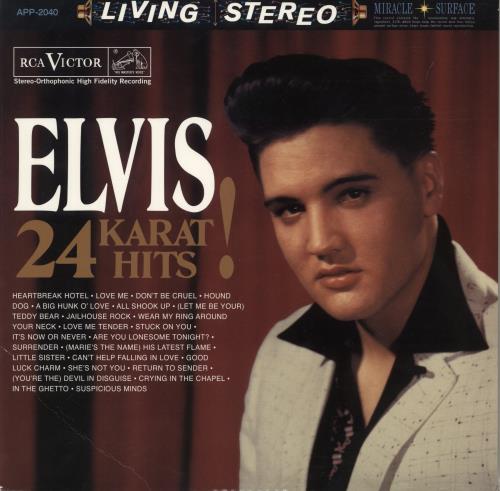 ELVIS PRESLEY 24 Karat Hits! (2010 issue US limited edition Analogue Productions 24-track triple LP compilation album pressed on 45rpm 180 Gram Heavyweight Vinyl, glossy deluxe single pocket picture sleeve with inner sheet giving tracklisting, credits and a reprinting of a letter from Recording Engineer Bill Porter to Steve Hoffman. The sleeve has a little creasing to corners and the vinyl is also graded Excellent, with only light play APP-2040)
